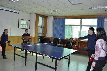 接下来我们进行了乒乓球男女混双比赛。选手们你推我挡,这边大力扣杀,那边奋力救球。观众们为打出一拍好球而鼓掌,也为一次失误而叹息。整场比赛即紧张又活泼。