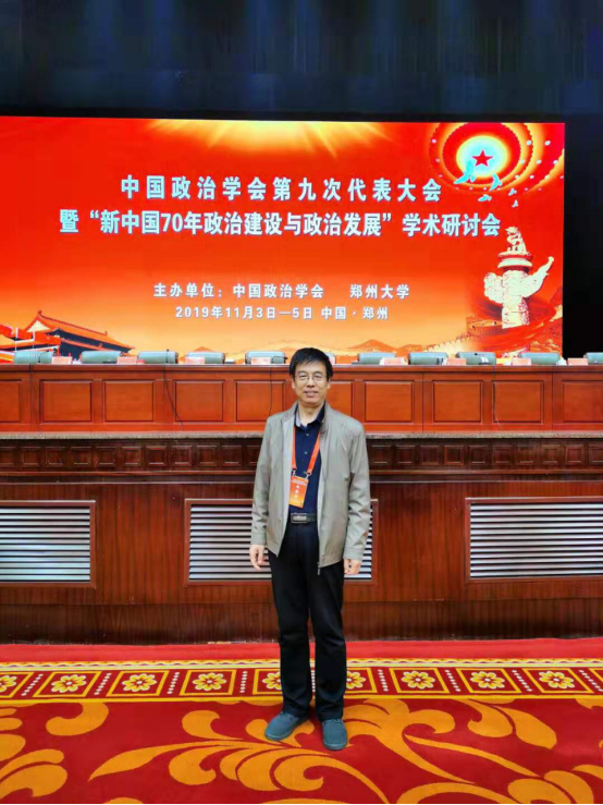 2019年11月4-5日,“中国政治学会第九次代表大会暨新中国70年政治建设与政治发展学术研讨会”在郑州举行,来自全国各地的会员代表300余人与会。郑州大学党委副书记李兴成致辞,中国政治学会会长李慎明作第八届理事会工作报告,副会长兼秘书长杨海蛟作第八届理事会财务报告,副会长王浦劬作修改章程的说明。大会由中国政治学会副会长、中国社会科学院政治学研究所党委书记房宁主持。beat365赵跃先教授和四名研究生参加了此次会议。