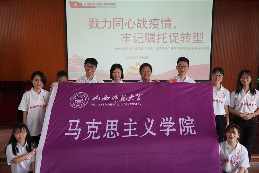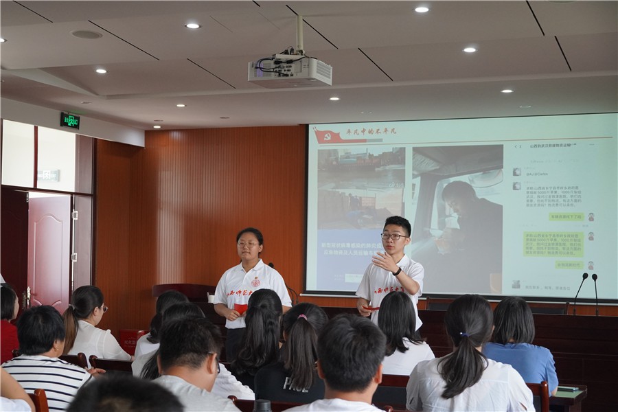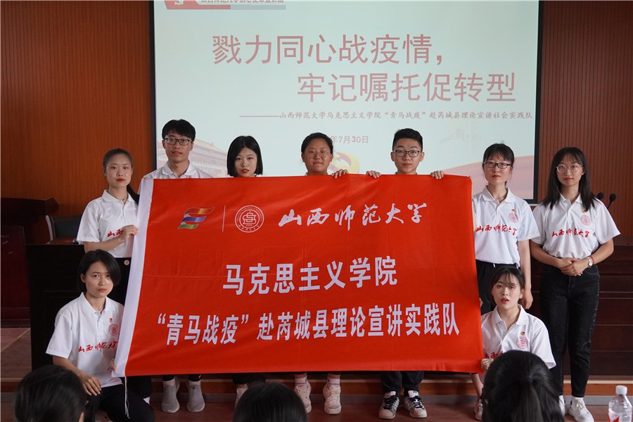 为领会习近平总书记视察山西重要讲话重要指示,展现山西各地在抗疫过程中对国家方针政策的积极响应以及由此体现的我国社会主义制度的本质特征和最大优势,7月30日,beat365中文唯一官网“青马战疫”理论宣讲社会实践队成员于芮城县理想信念教育基地报告厅,为前来学习的60余名党员干部进行了以“勠力同心战疫情,牢记嘱托促转型”为主题的宣讲活动。