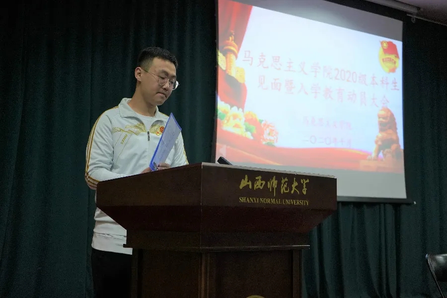 会议最后,院党委书记王银进行总结发言,他首先对2020级新生的到来表示热烈的欢迎和衷心的祝贺,接着对学生代表的发言给予了肯定。他指出,同学们应从五方面做起,一是要爱国励志,把热爱家乡与热爱祖国结合起来,把理想抱负、成长发展与祖国的前途、民族的命运结合起来,自觉培育家国情怀,自觉践行社会主义核心价值观;二是要求真力行,珍惜大学四年的时光,坚持“博学之,审问之,慎思之,明辨之,笃行之”,努力成为一名“学高为师、身正为范”的新时代师大人;三是要拥有梦想,着眼未来,找准自己的人生航向,树立远大理想,将个人梦寓于伟大的中国梦之中,将个人的进步融入到与实现中国梦的生动实践之中,实现与祖国共奋斗,与时代同发展;四是要爱校荣院,尽快适应学习环境,珍惜爱护beat365中文唯一官网,共同创造beat365中文唯一官网更加灿烂辉煌的明天;五是要学会生活,转变角色、适应环境,保持身心健康,坦然面对挫折和进步,要加强体育锻炼,在运动场上展示青春活力和靓丽风采。最后,他希望同学们能够沉淀下来、站在更大的格局中、更高的坐标上去思考生命的本真与价值,以一种更健康、更平和、更挺拔的生命姿态行走在天地间,激发出奋进的智慧与能量,创造出人生的奇迹与诗意。