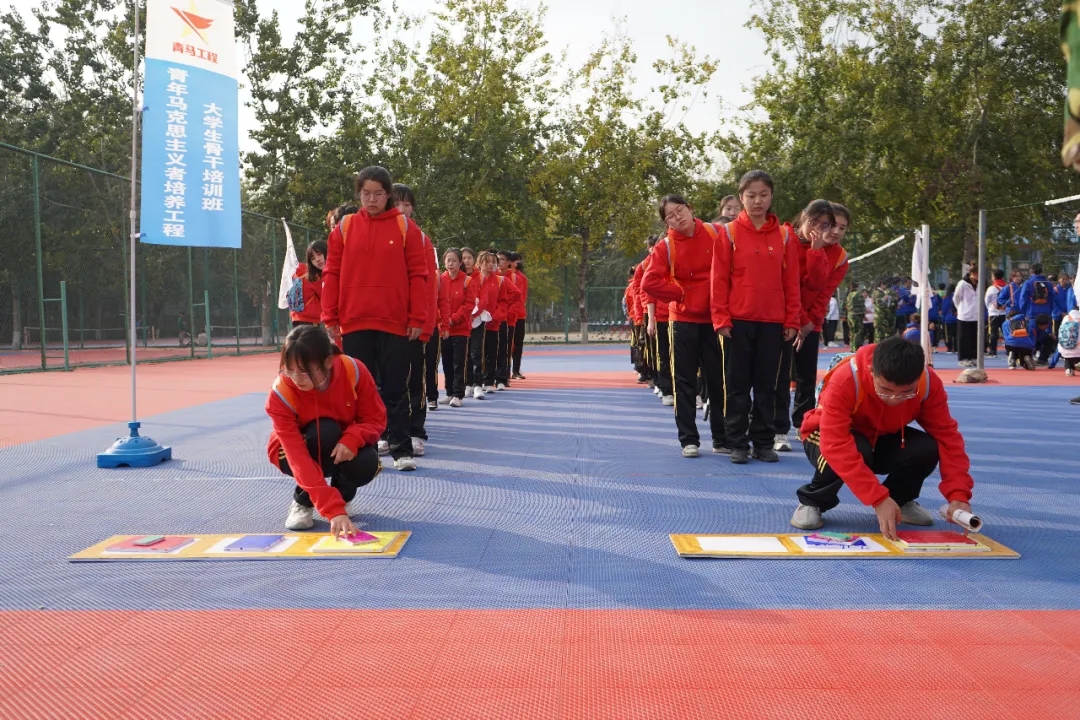 随后,素拓引导员对同学们进行了简单的项目介绍,并规定口号为“我的青马,我的团”。同学们列队前往操场,素拓活动正式拉开大幕,精彩即将上演。