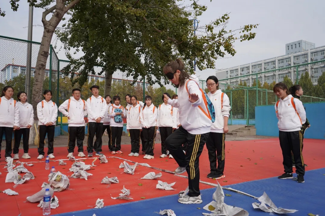 之后,同学们迎来了第一个素拓项目—“迷雾森林”。项目要求三人指挥,一人佩戴眼罩进入迷雾森林,佩戴眼罩者的身体部位不能触碰到地上的障碍物,否则死亡,15分钟内有一人活着走出森林,即任务成功。此项活动考验同学们的前期策划能力,以及执行过程中的默契与相互信任,整个过程紧张刺激,十分有趣。