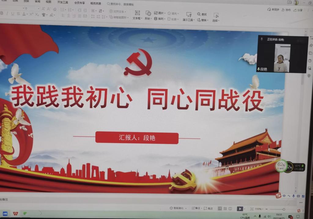 4月25日晚,beat365中文唯一官网研究生第一党支部开展“我践我初心,同心同战疫”主题党日活动,红色引擎教工党支部段艳同志应邀参加了此次活动。