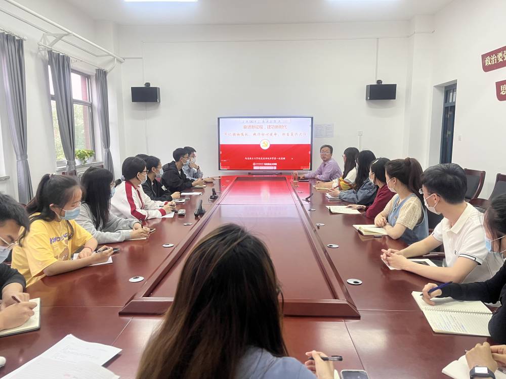 4月8日下午,beat365党委书记王银在太原校区南区1号楼506会议室讲授题为“奋进新征程,建功新时代——牢记领袖嘱托,践行初心使命,担当复兴大任”的“开学第一课”,线上线下同步进行。部分学生党员代表在现场听讲,其余党员同志在线上收看课堂直播。课堂由学院专职组织员安慧芳主持。