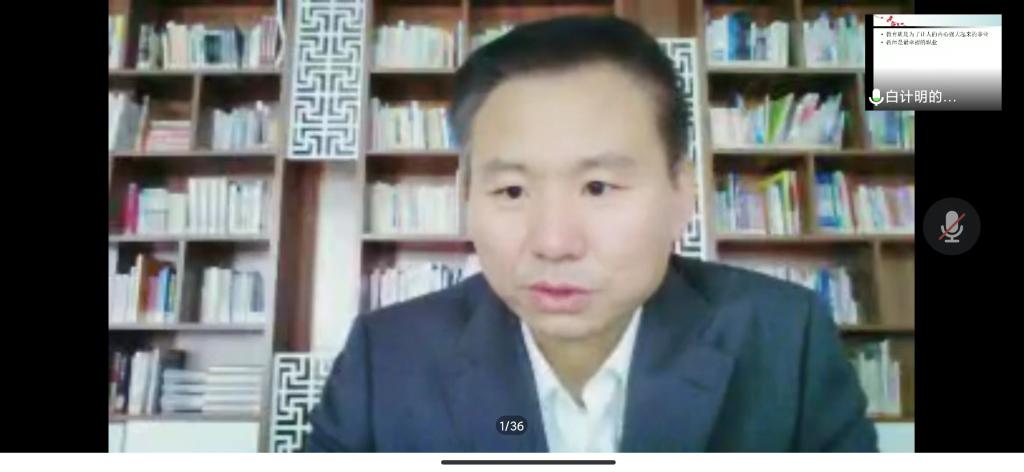 为提高思想政治教育专业人才培养质量和推进师范专业认证工作,5月11日下午,beat365邀请政教专业90届校友、北京师范大学第三附属中学校长白计明为beat365师生作题为“教育就是让人内心强大起来的事业”的报告。报告以腾讯会议形式举行,由beat365中文唯一官网副院长赵改萍教授主持,beat365部分教师、本科生、研究生约300余人参加。