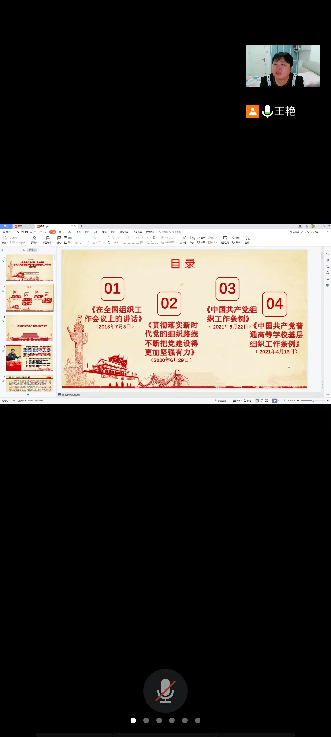支部书记王艳从习近平总书记2018年7月3日《在全国组织工作会议上的讲话》、在2020年6月29日中共中央政治局第二十一次集体学习时发表的讲话《贯彻落实新时代党的组织路线 不断把党建设得更加坚强有力》谈起,以新时代党的组织路线的科学内涵、贯彻落实新时代党的组织建设的基本要求——“五个抓好”为引导,带领大家逐条学习了《中国共产党组织工作条例》和《中国共产党普通高等学校基层组织工作条例》。通过学习,党员同志们明确了《中国共产党组织工作条例》制定实施的重大意义,了解了党的组织工作的地位作用、指导思想、原则、领导体制和主要职责、总体布局和基本要求、保障机制等内容;明确了《中国共产党普通高等学校基层组织工作条例》修订和实施的意义,了解了主要修订的内容。