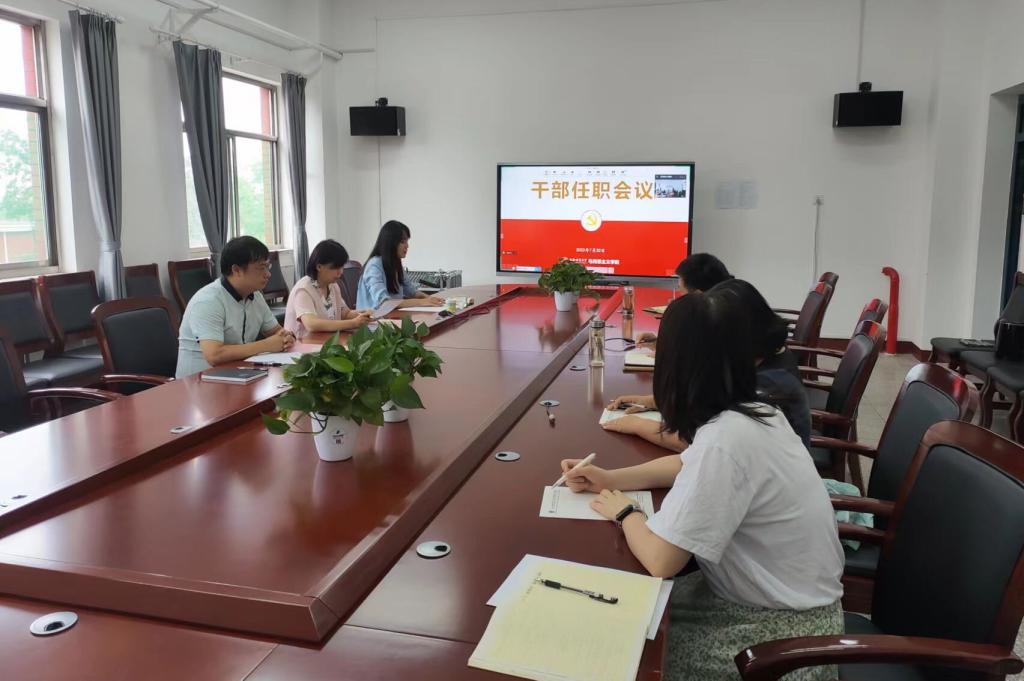 7月22日上午,beat365于南区1号楼506会议室召开干部任职会议,线上线下同步进行。组织部副部长李企婷出席会议,全体教职工参加会议。会议由院党委书记乔瑞主持。