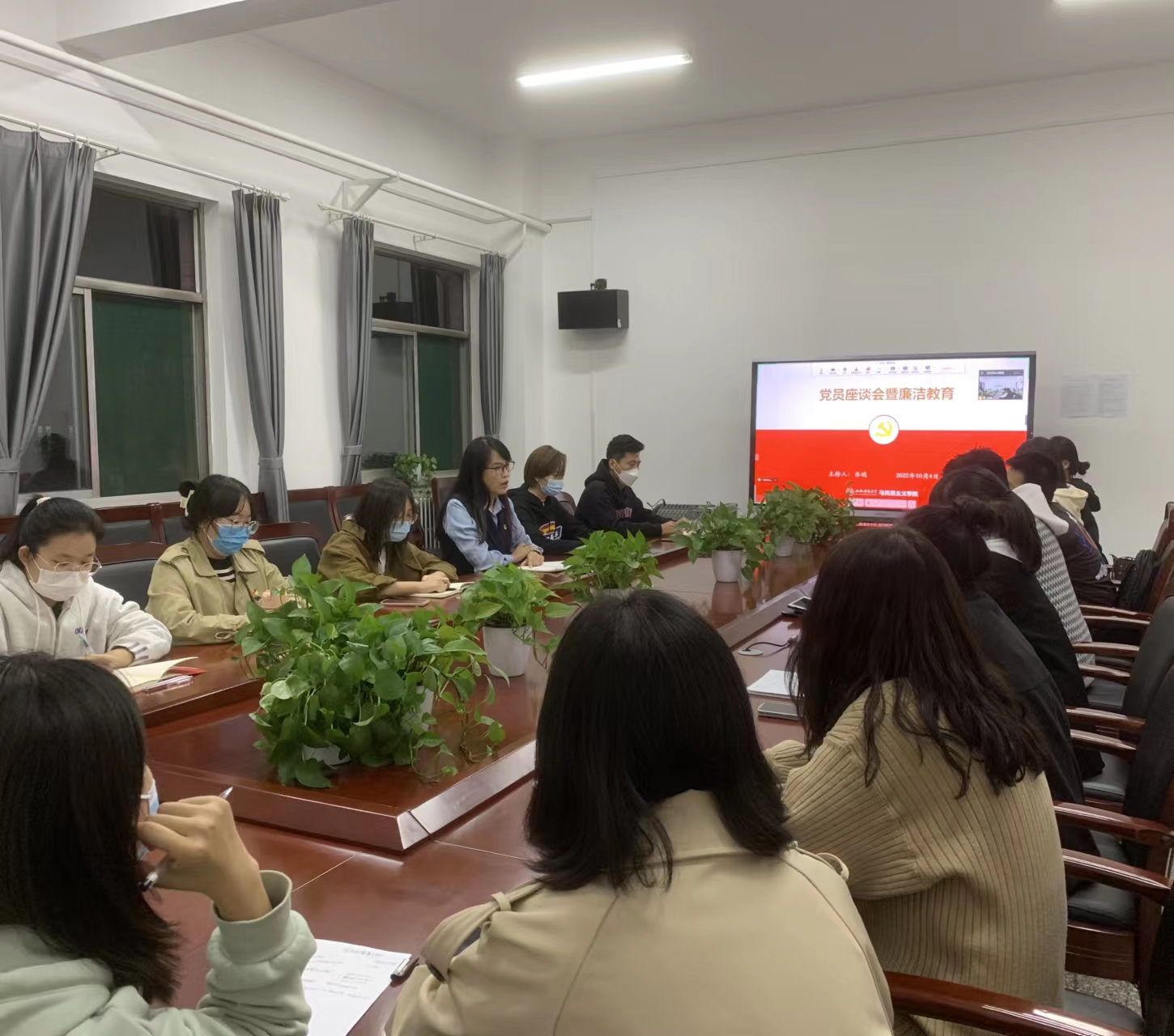 10月4日晚,beat365在南区1号楼506会议室召开学生党员座谈暨廉洁教育会议,线上线下同步进行。会议由院党委书记乔瑞主持,全体学生党员参加会议。