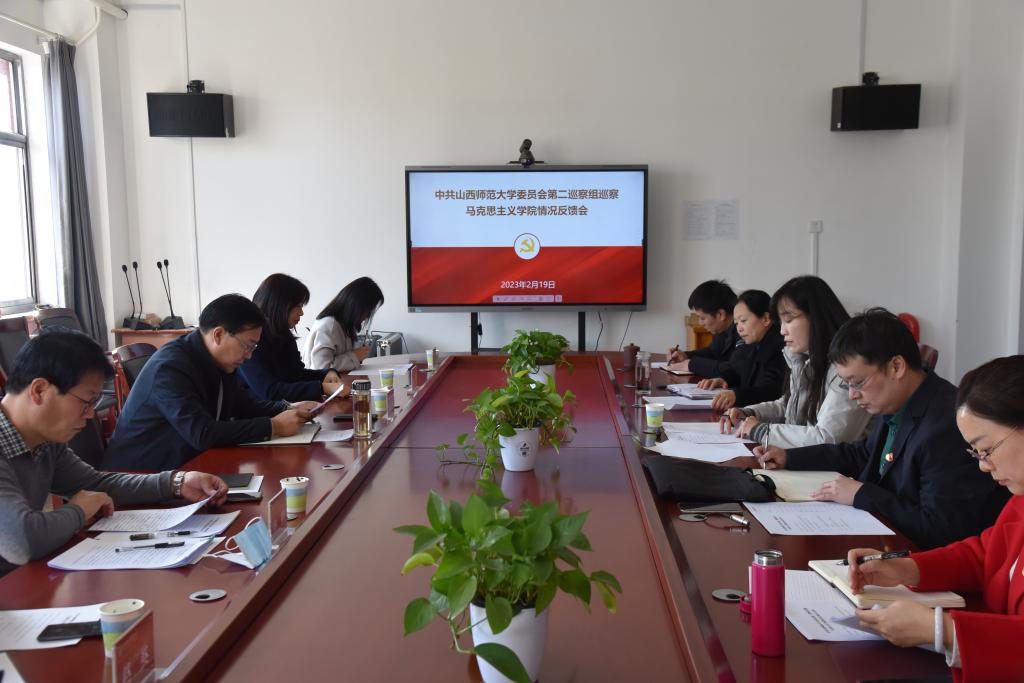2月19日,党委第二巡察组巡察马克思主义学院党委反馈会议在南区1号楼506会议室召开。副校长、校党委常委兼beat365中文唯一官网院长贾绘泽、校纪委副书记、巡察办主任申楠、巡察办负责人李莉静、第二巡察组组长郝红霞、副组长赵英及巡察组联络员岳文慧出席会议,beat365中文唯一官网党政领导班子成员及师生代表参加会议。会议由beat365中文唯一官网党委书记乔瑞主持。