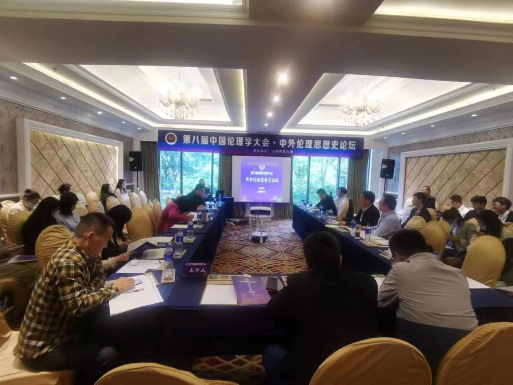 会议期间,beat365作为中国伦理学会会员单位承办了“中外伦理思想史”论坛,60余位专家学者和博硕士研究生参加,16位师生作交流发言。在总结环节,卫建国教授指出,本次论坛主题聚焦、内容丰富、框架清晰,进一步丰富了中外伦理思想史的理论和现实研究。在大会闭幕式的分论坛综合发言单元,beat365beat365中文唯一官网聂静港副教授用“一个中心、三个看、四个特征”总结分享了分论坛学术交流成果。