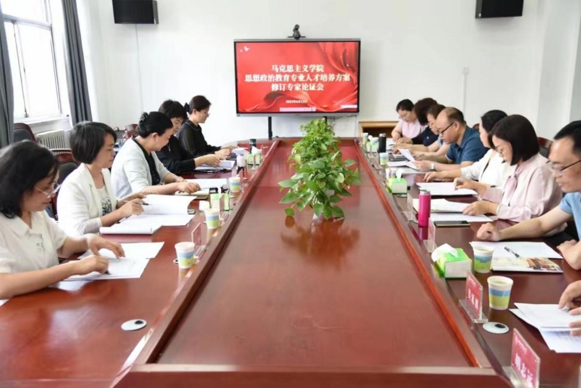 会议第一项,思政系主任杨海亮介绍参会人员并对论证专家组成员表示欢迎和感谢,说明了召开本次论证会的重要意义,同时希望各位专家组成员为本次思政专业人才培养方案修订提出宝贵意见,促进学院人才培养质量的不断提升。会议第二项,副院长(主持工作)赵改萍介绍了beat365中文唯一官网学院和思想政治教育专业建设情况。副院长赵秀芳汇报2023年思想政治教育本科专业人才培养方案修订情况,从专业简介、培养目标、毕业要求、学制与修业年限、学分要求和授予学位、课程结构及学分分配表及教学计划安排等方面向与会专家介绍。会议第三项,各位校外专家审阅新修订的人才培养方案并提出意见和建议。刘琦从学生未来发展视角、学生就业岗位需求视角、家校社合一视角、思政学科需要角度对具体课程设置和专业人才能力培养等方面给予改进建议。王福俊结合学生实习情况、中学生的心理成长规律、中学思政课开设情况对人才培养方案教育学、心理学、劳动教育等具体课程设置、考核方式、教育实习等方面的优化提出宝贵建议。王明霞从课堂教学出发,提出注重前瞻性、加强教学信息化教学、突出实践教学能力、进一步突出人才素养导向、跨学科学习等建议。柳艳凤结合中学教育的实际情况,对人才培养目标、突出思政教育特色、三笔字等具体课程设置、教育实习实操能力培养等方面提出建议。茹育从公费师范、优师计划学生、普通师范学生的特点出发,学生毕业要求全覆盖、可执行、可评价出发,就培养目标、科学素质培养等方面提出建议。
