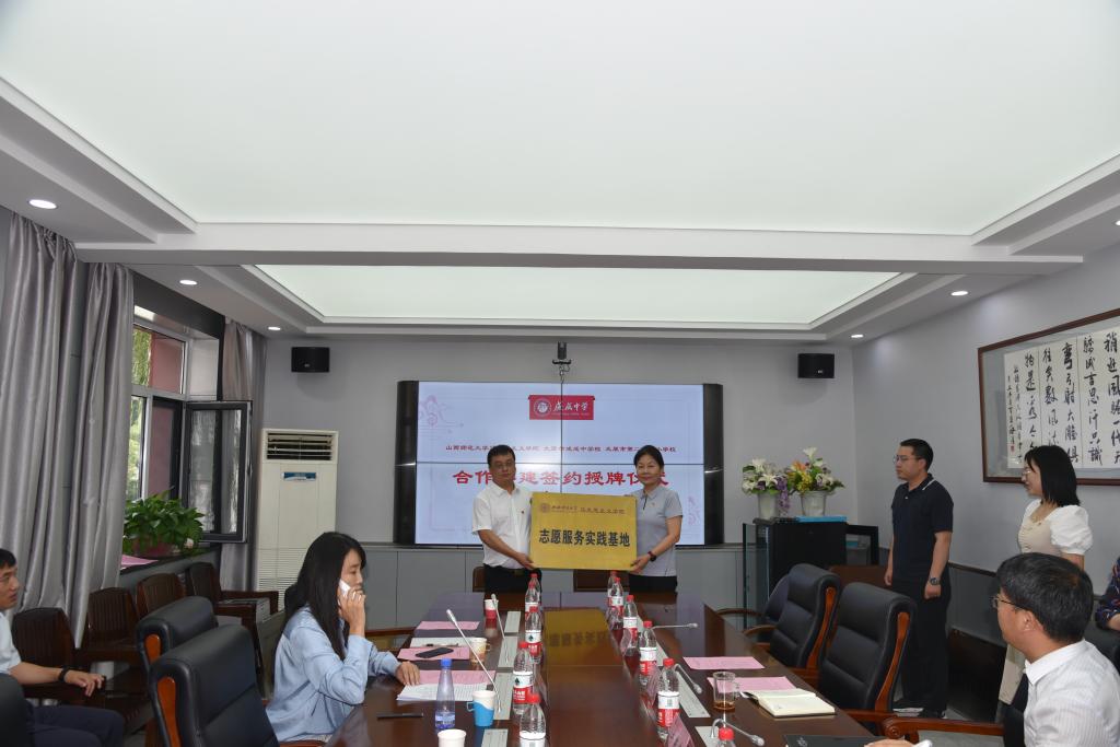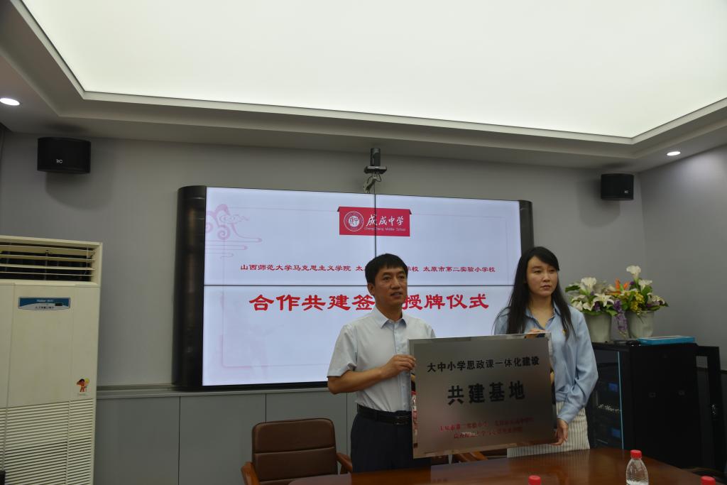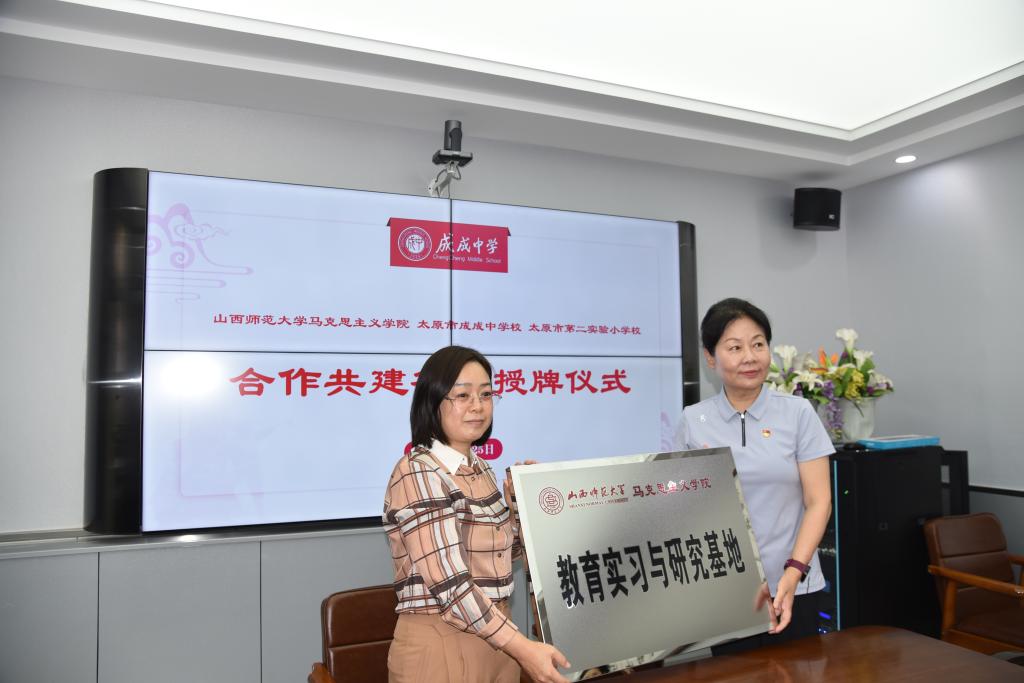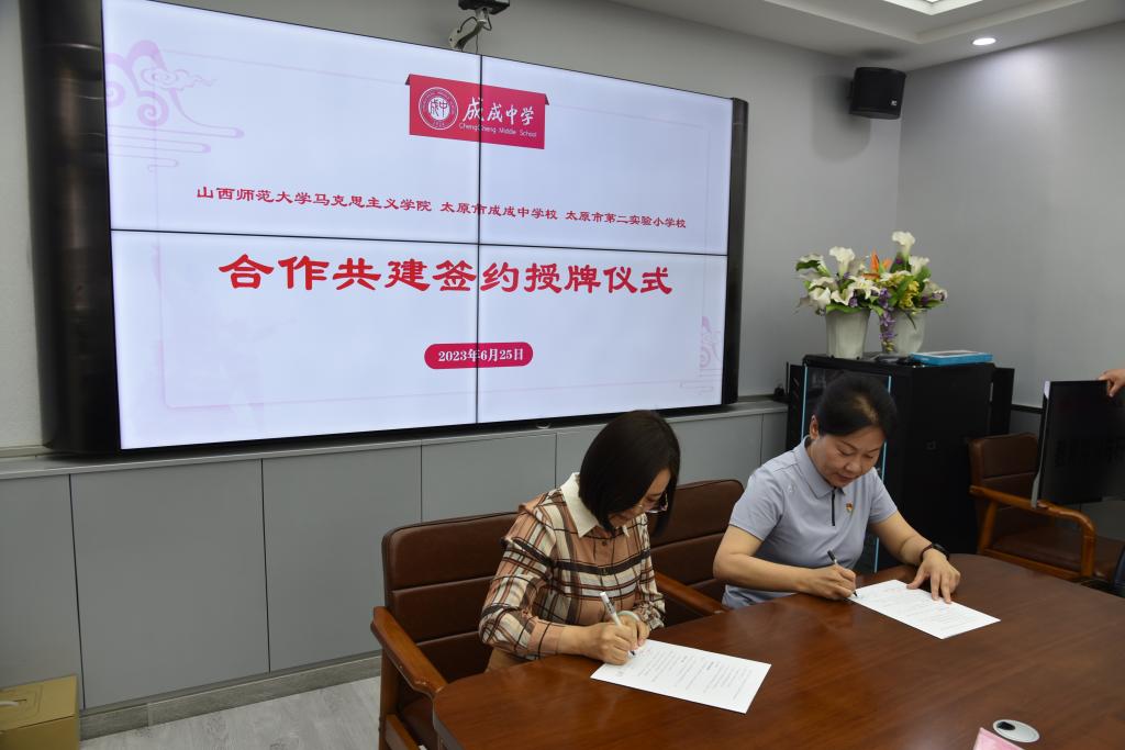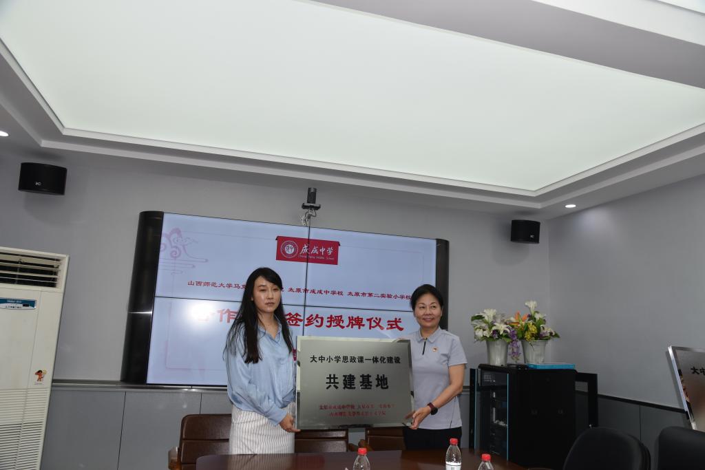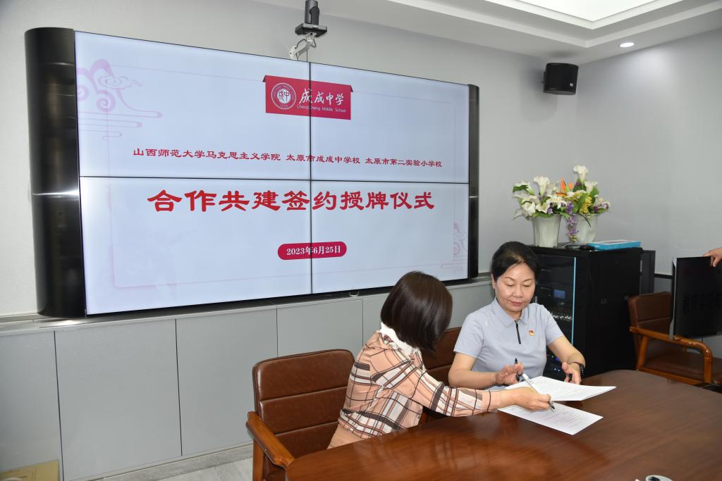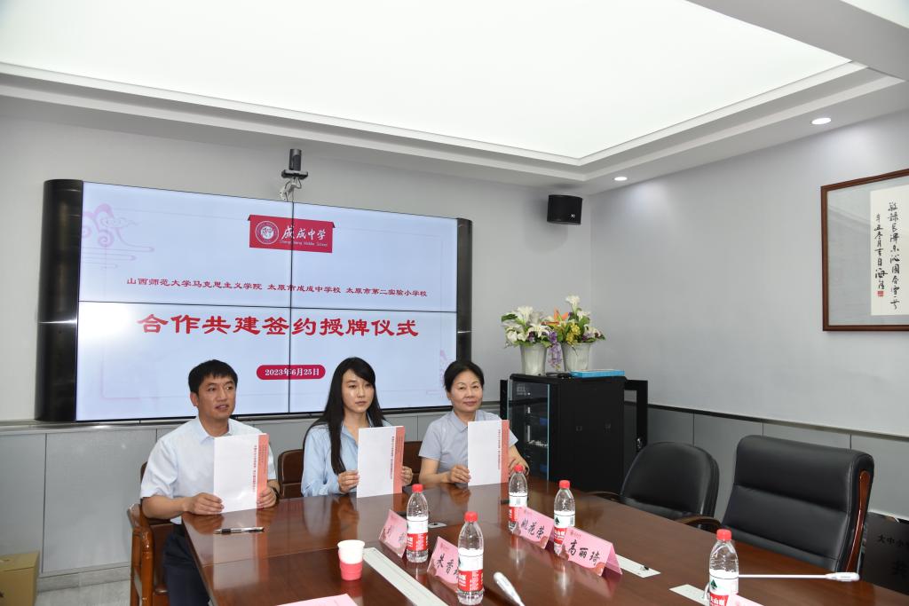 2023年6月25日上午,beat365中文唯一官网与太原市成成中学校、太原市第二实验小学大中小学思政课一体化建设共建基地、教育实习与研究基地和志愿服务基地签约授牌仪式在太原市成成中学校迎泽校区隆重举行。