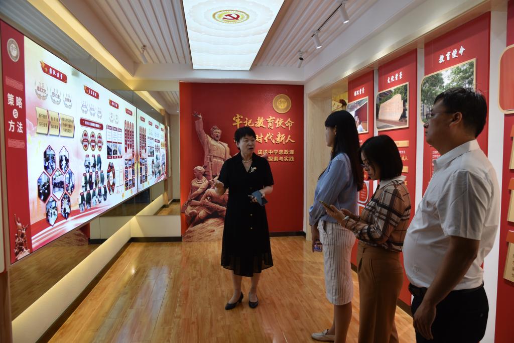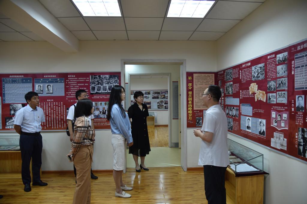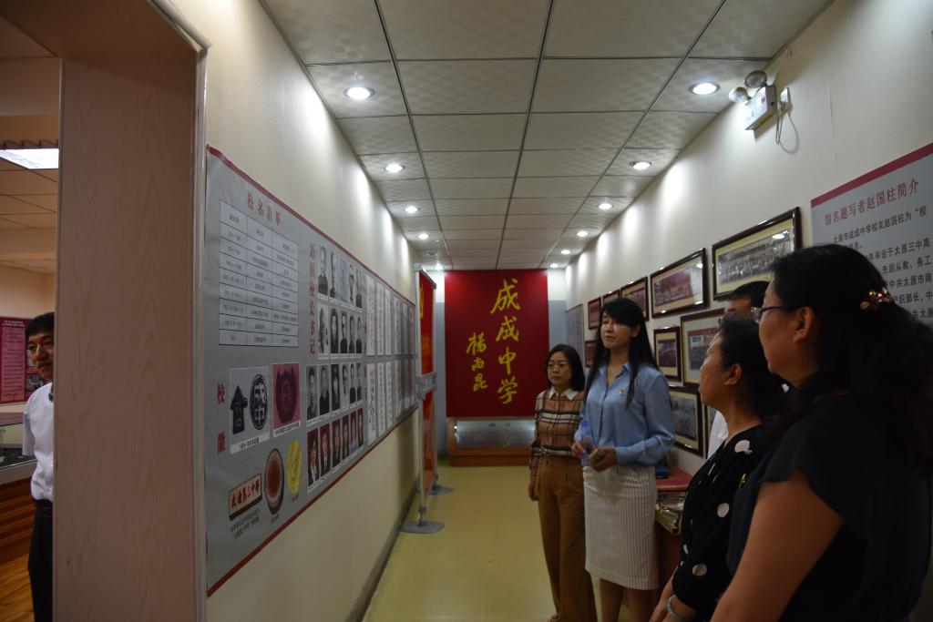 签约仪式前,beat365领导老师与太原市第二实验小学校长张晓红一行,在太原市成成中学党委办公室主任靳晓东和副校长刘琦的讲解下,共同参观了成成中学校史馆和思政堂,感悟成成中学近百年红色校史,砥砺红色信仰,学习思政工作经验。