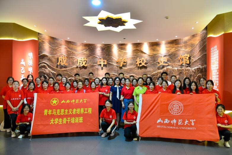 成成中学由晋籍北平师范大学毕业的进步学生取《中庸·自成》中“明德明理,成己成人”之意为办学宗旨而创建,“七七”事变后,成成师生举校从戎,共赴国难。走进校史馆,一幅幅照片、文物档案以历史为序,展现出成成中学往昔的峥嵘岁月。成成中学教师围绕真实发生的“师生抗日游击队”展开教学,带领青马学员感受那段波澜壮阔的历史,帮助学员了解成成中学的历史、成成师生筚路蓝缕奠基立业的艰辛历程,激励学员克服一切艰难险阻,踔厉奋发,为实现中华民族伟大复兴而奋斗。成成中学的思政课由思想政治课拓展到各个科目,全面推进思政课实践,各个优秀教师的事例坚定青马学员的理想信念。为全体青马学员讲了一堂生动的思政实践课