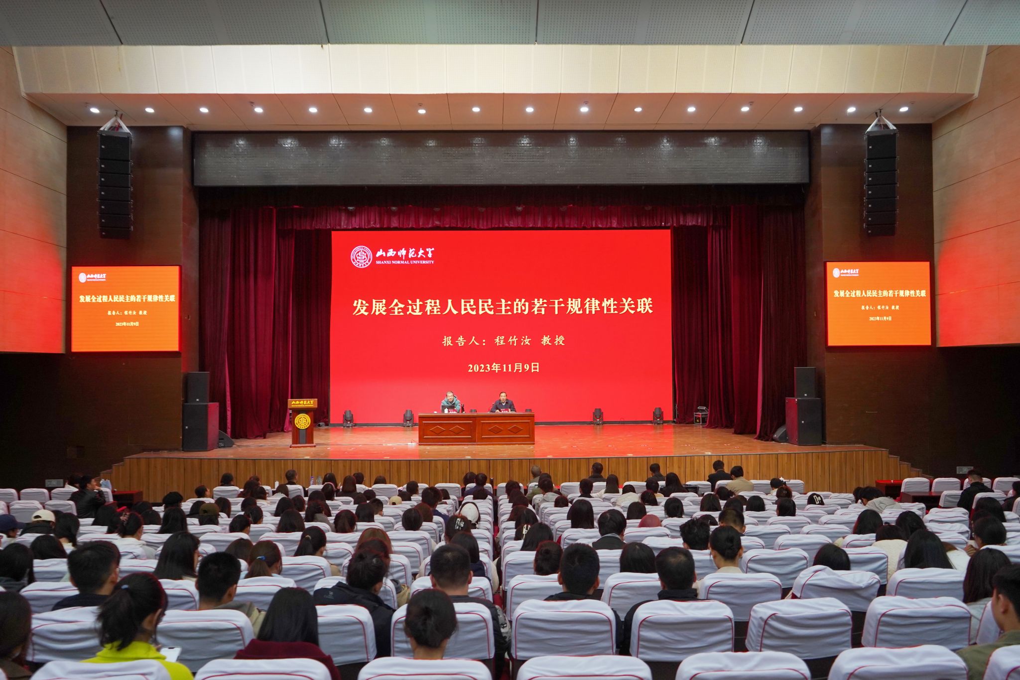 11月9日下午,beat365杰出校友、上海交通大学长聘教授、博士生导师程竹汝教授应邀在学校南校区科学会堂报告厅作了关于“发展全过程人民民主的若干规律性关联”的专题报告。报告会由校党委副书记薛勇民主持,beat365中文唯一官网、社会学与法学学院相关教师和学生聆听了报告。
