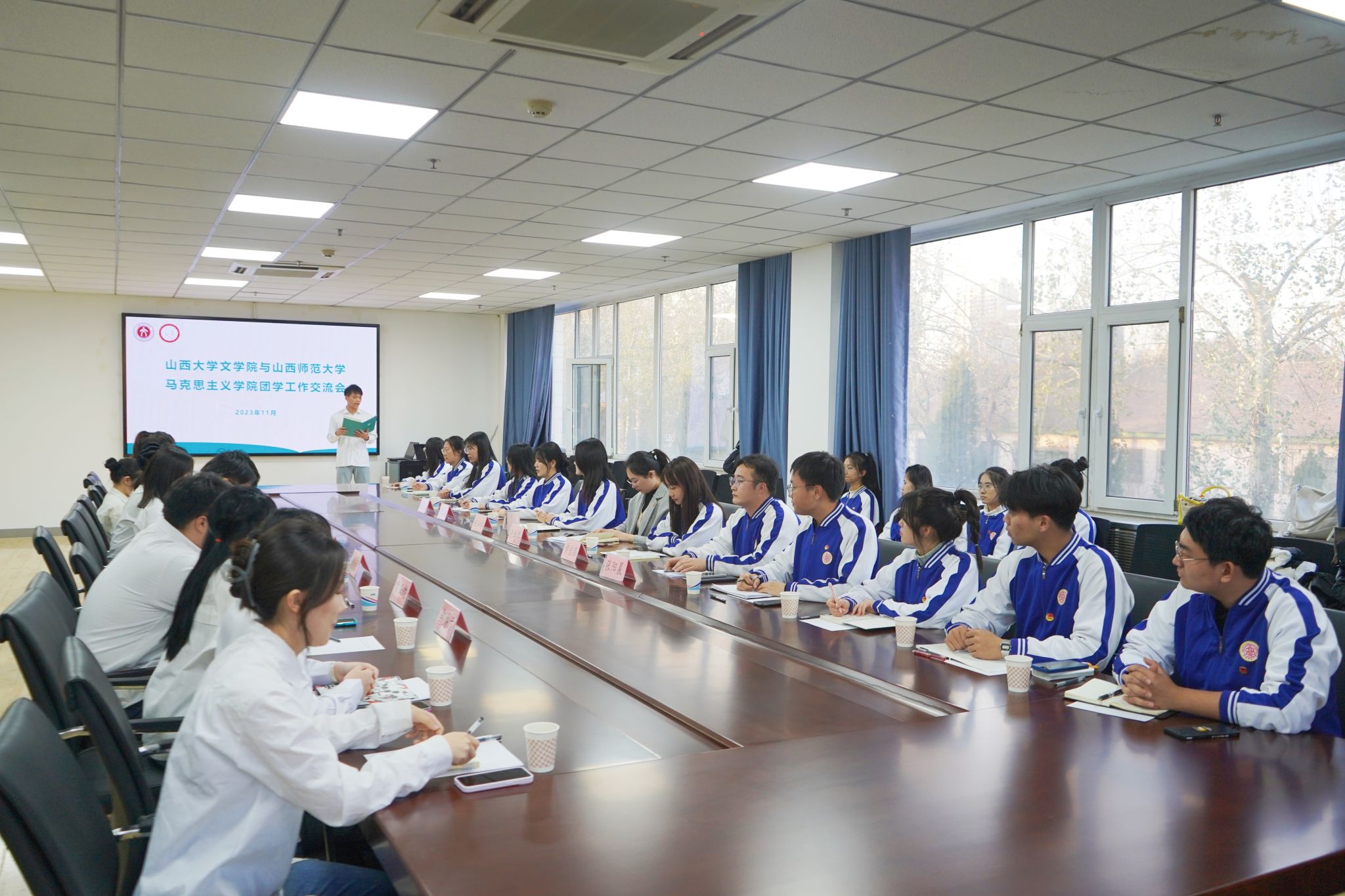 参观结束后,双方前往山西大学文学院商学楼B309会议室,紧紧围绕各自的学生工作与品牌特色展开了深度探讨。