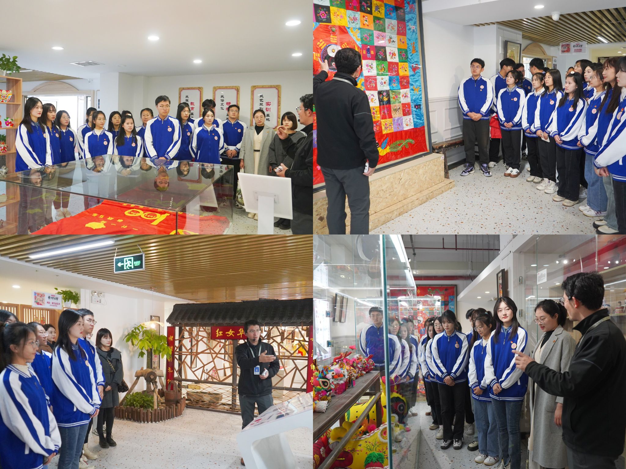 领略黄河文化,探访千年传承。首先,双方共同走进了小虎阿福·黄河民艺馆,在张国伟老师的带领下,同学们参观了黄河流域布扎艺术主题展,走进黄河布艺,感受女红技艺,在一个个精美作品中领略经典传承、天地传承和心灵传承的精神魅力,并在质工集·造物工坊参观了雕塑传拓等传习场地和作品展示,重点了解了“天弓”这一作品的创作背景,体会到了精益求精、追求卓越的匠心精神,沉浸于作品背后深厚的文化底蕴。