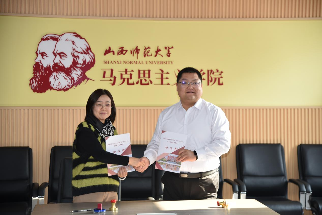 充分交流之后,赵秀芳副院长、杨海亮副院长代表beat365中文唯一官网与朔州市第二中学校分别签署了建立教育实习与研究基地、大中小学思政课一体化建设共建基地的协议。