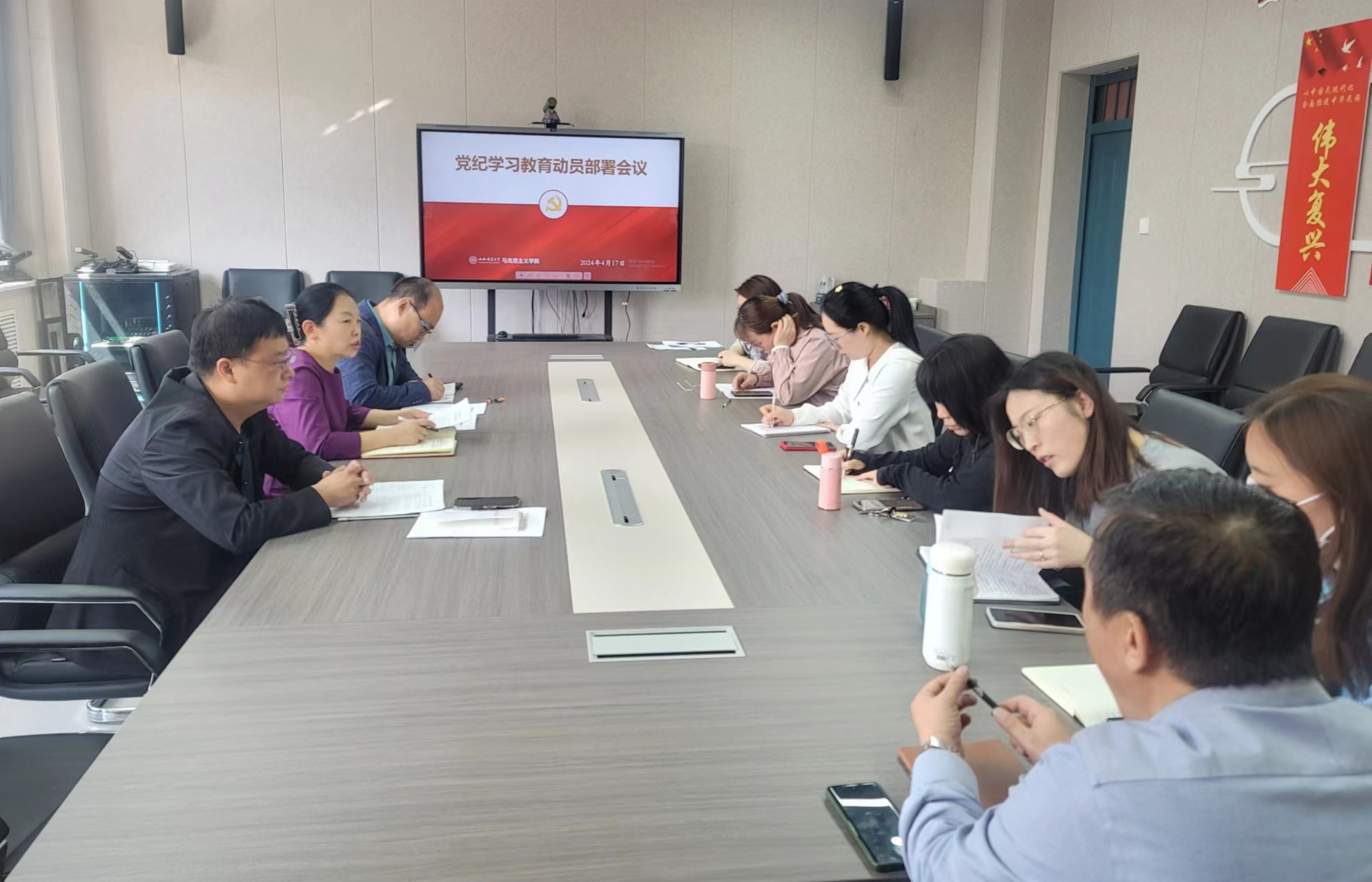 4月17日上午,beat365在1506会议室召开党纪学习教育动员部署会议。全体在校党委理论学习中心组成员参加会议,常务副院长(正处级)赵改萍主持会议,并作动员讲话。