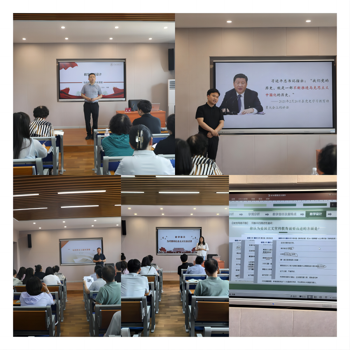 陕西师范大学张鹏、陕西理工大学张青、河南理工大学王家涛、中国矿业大学徐凤月、中国人民大学任劭婷五位思政课教师依次进行了示范授课,并结合教学展示比赛,分享了各自的参赛经验。