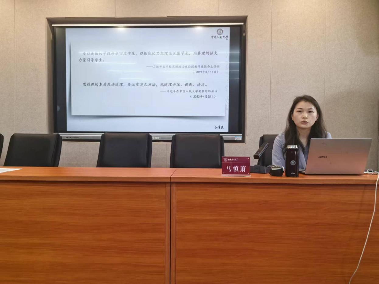首先,马慎萧代表中国人民大学beat365中文唯一官网向beat365赠送精美纪念礼品。其次,马老师从学识积累、回应问题、教学设计等维度对思政课如何讲道理进行了系统阐释,结合原理课“资本主义经济金融化”“三问马克思主义”专题进行示范教学,分享了在教学备赛方面的经验心得。最后,与会教师围绕原理课教学研究热点焦点问题与马老师进行了热烈讨论。