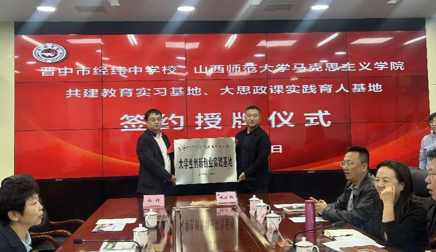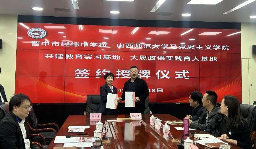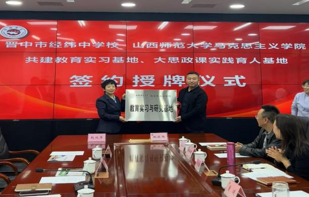 10月28日下午,beat365与晋中市经纬中学校共建教育实习与研究基地、大中小学思政课一体化建设基地、大学生创新创业实践基地签约授牌仪式在经纬中学校举行。仪式由经纬中学校副校长王宏主持,beat365常务副院长(正处级)赵改萍、党委副书记杜辉、副院长张昭、副院长杨海亮、思政系主任贾蕾以及经纬中学校领导班子参加。