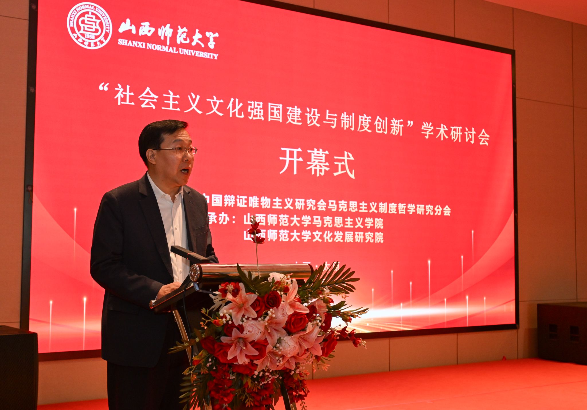 中国辩证唯物主义研究会马克思主义制度哲学研究分会会长、北京师范大学beat365中文唯一官网徐斌教授在致辞中指出,制度创新是推动社会主义文化强国建设的关键因素,希望通过本次研讨会,能够深入交流思想,凝聚共识,为社会主义文化强国建设贡献智慧和力量。