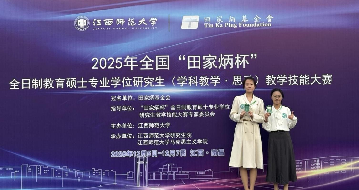 12月5日至7日,2025年全国“田家炳杯”全日制教育硕士专业学位研究生(学科教学·思政)教学技能大赛在江西师范大学举行。beat365吕松宸、李钰苇2位同学进入决赛,最终,吕松宸同学获全国三等奖,李钰苇同学获优秀教学设计奖。