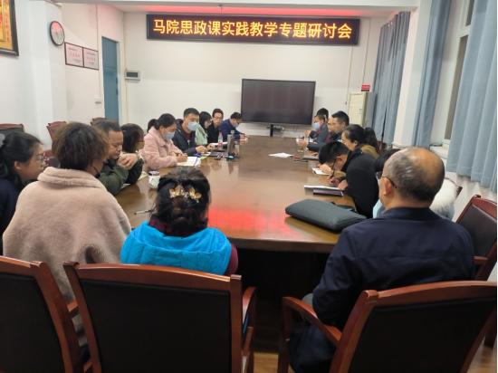为提升马院思政课教师实践教学水平,加强湖北省一流课程《马克思主义与当代中国》暑期社会实践课程建设,11月21日下午,学院在3206会议室召开思政课实践教学专题研讨会,会议由思政课部主任马保青主持,副院长(主持工作)黄永昌、院长助理安军和全体思政课教师参加会议。