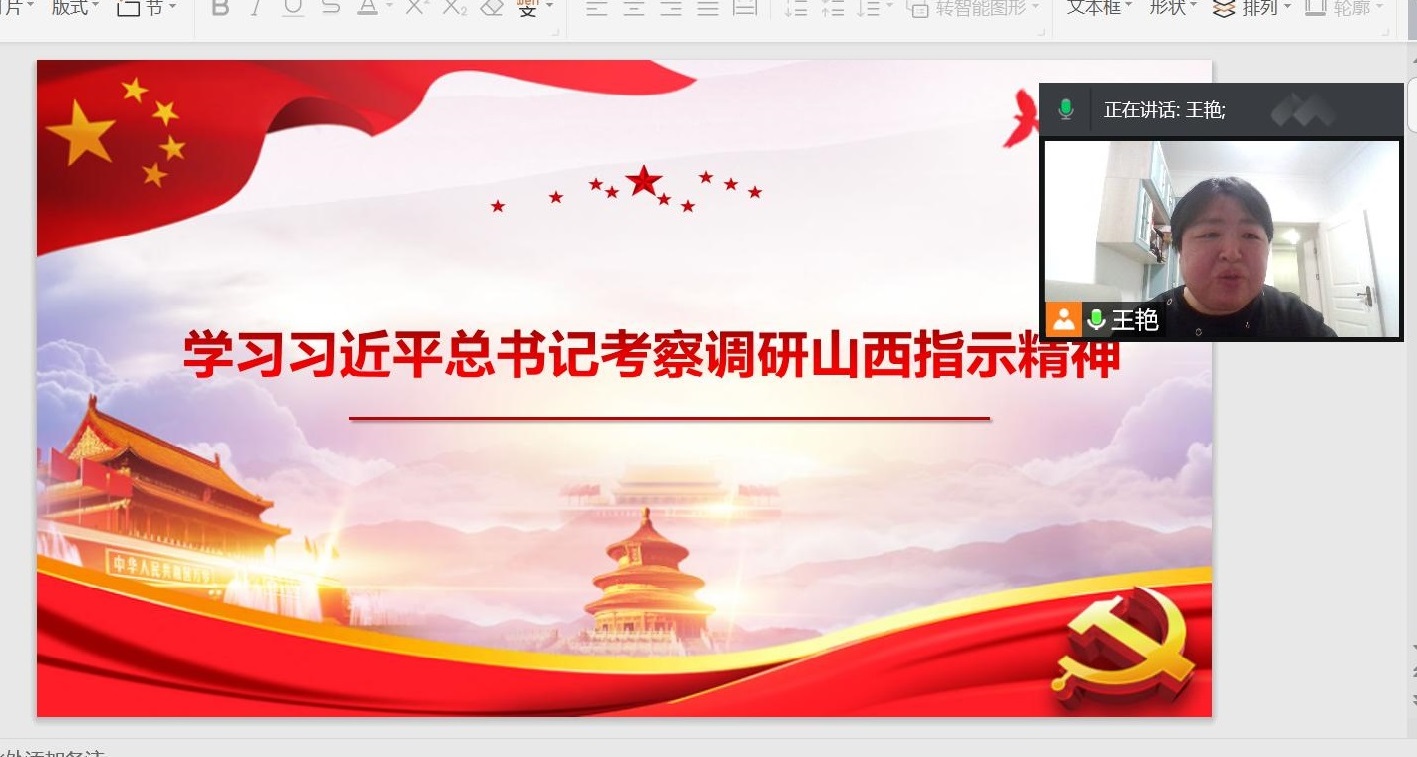 王艳带领大家回顾了习近平总书记三次考察调研山西的情况,从坚持以人民为中心、弘扬中华优秀传统文化坚定文化自信、走转型发展创新发展绿色发展的高质量发展之路等方面总结了自己的学习感悟。