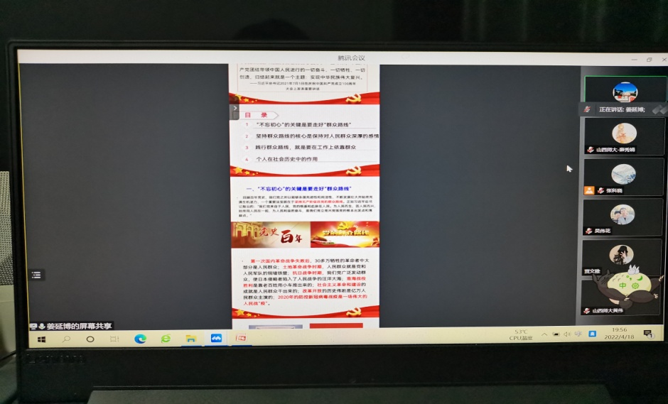 2022年4月18日晚上19:30-21:00点,beat365中文唯一官网受邀与中北大学beat365中文唯一官网马克思主义基本原理教研室开展集体备课。会议由中北大学beat365中文唯一官网原理教研室主任张科晓老师主持,共有来自两校40余位任课教师参加会议。