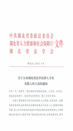 本网讯(文/图 郑实)近日,中共湖北省委政法委员会、湖北省人力资源和社会保障厅、湖北省法学会联合印发《关于公布湖北省法学法律人才库首批入库人员通知》,我校pg游戏电子模拟器安军博士入选湖北省青年法学法律人才,成为首批入库人员。