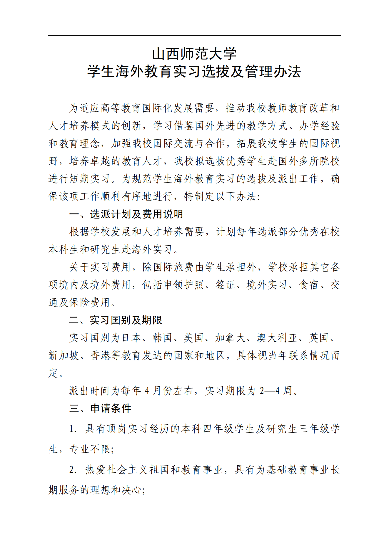beat365中文唯一官网学生海外教育实习选拔及管理办法