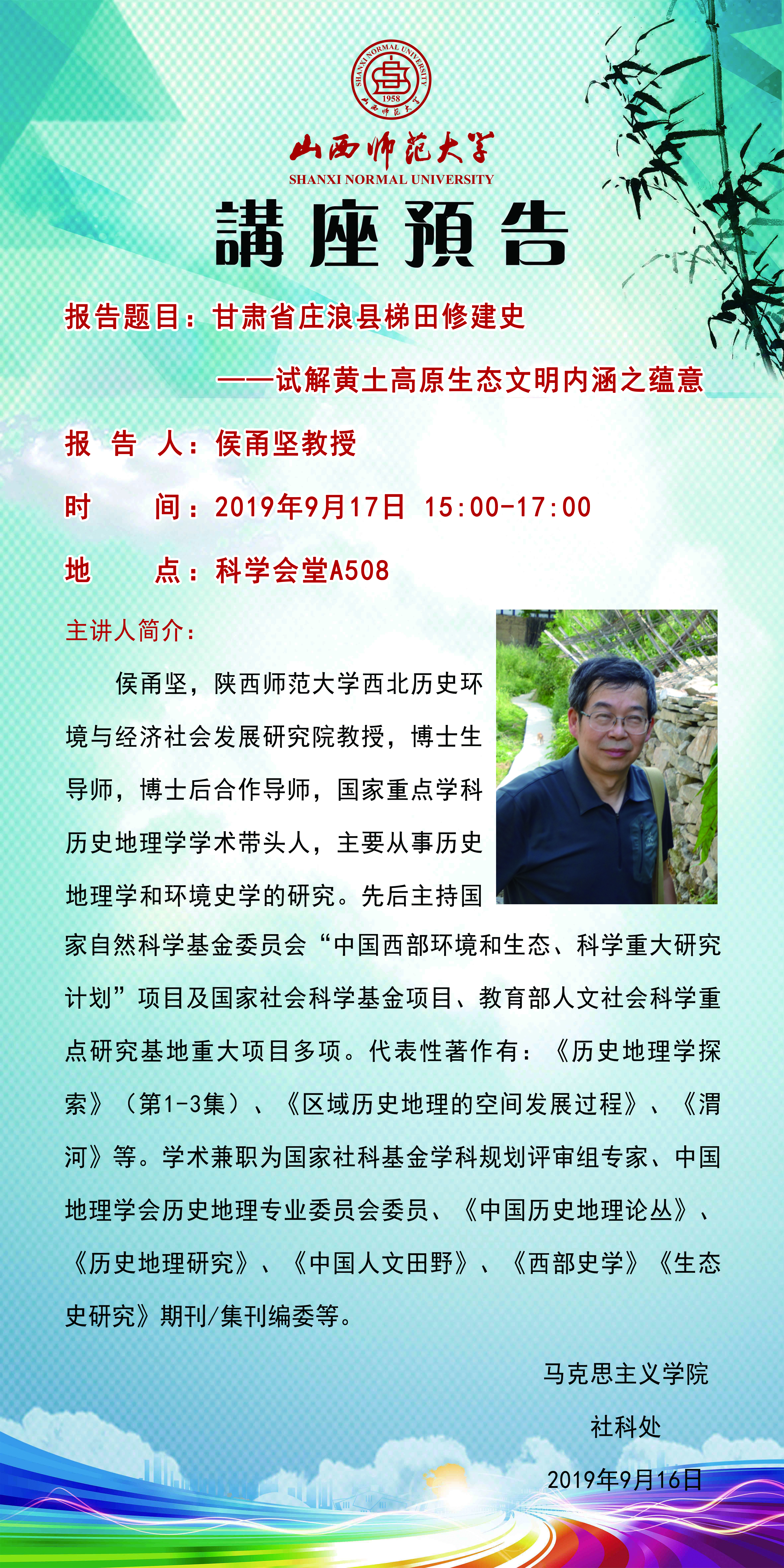 【预告】 陕西师范大学侯甬坚教授应beat365中文唯一官网邀请来beat365作学术报告