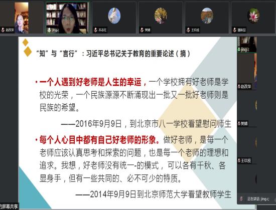 常晶教授作了《我们为什么需要反思——从知行合一与言行一致谈高校教师的立德修身”》的主题报告。常晶教授深刻阐述了新时代高校师德建设的重大意义,并结合习近平总书记关于师德师风重要论述和典型案例,解读了高校教师做到知行合一和言行一致的着力点。