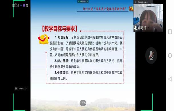 5月3日下午,太原科技大学、教育部思政课教学展示一等奖获得者武艳红副教授走进《中国近现代史纲要》课堂,为beat365100多名大一学生讲授《没有共产党就没有新中国》。武艳红副教授的授课以“没有共产党就没有新中国”的歌曲导入,从政党力量、民心向背、统一战线三方面展开,通过生动、深入、具体的横向与纵向比较,为学生讲清楚了“中国共产党为什么能建立新中国”的问题,激发了学生心理与情感上的强烈共鸣。