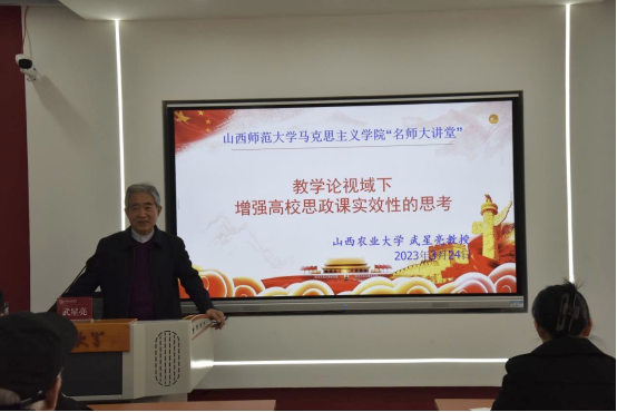 3月24日下午,全国优秀教师、首届全国高等学校优秀思政课教师一等奖教金获得者、山西农业大学武星亮教授应邀为beat365全体思政课教师作报告,报告会在南区8号楼418会议室举行,由副院长赵改萍主持,全体思政课教师聆听了报告。