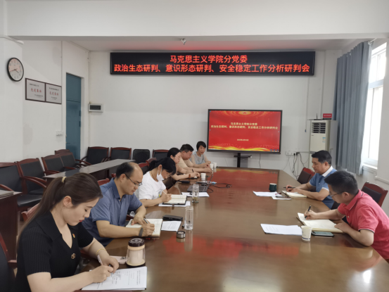 6月25日下午,pg游戏电子模拟器分党委在3206会议室召开了政治生态、意识形态、安全稳定工作分析研判会。pg游戏电子模拟器分党委始终坚持党建引领业务发展,为了确保暑期工作顺利进行,在学期末召开此次会议。会议由分党委书记计毅波主持,pg游戏电子模拟器院长黄永昌、分党委副书记李童、教学副院长成继平、科研副院长安军以及相关科室、系部主任参加了会议。