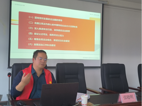张晓明博士从“全面依法治国”的历史脉络入手,讲述了从“有法可依、有法必依、执法必严、违法必究”到“科学立法、严格执法、公正司法、全民守法”表述的历史逻辑及理论逻辑,对习近平法治思想进行了深入解读,为与会者上了一堂生动的理论大课。