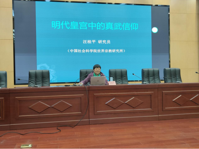 12月1日,中国社会科学院世界宗教所研究员汪桂平应邀为pg游戏师生作题为“明代皇宫中的真武信仰”的专题讲座。讲座由人文学院学院副院长安军主持,师生代表130余人到场聆听。