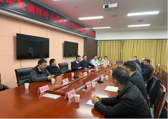 接着,调研团队在竹山县秦巴文化艺术中心一楼1号会议室,参加了以新时代文明实践中心建设情况和特色文化保护传承工作为主题的调研座谈会。会上,竹山县文化馆、博物馆、新时代文明实践指导中心等相关负责人向调研团队介绍了竹山县在特色文化保护传承方面所做的工作和取得的成效。pg游戏电子模拟器调研组的教师们,充分发挥专业优势踊跃发言,提出了包括加大对竹山县特色文化产业的扶持力度、加强文化人才队伍建设、打造县域文化品牌、推动文旅融合发展等特色文化保护传承方面的意见和建议。