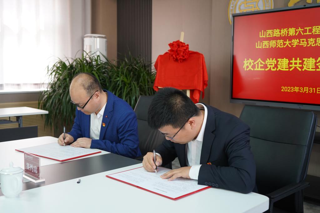 乔瑞和赵国锋分别代表双方党委签订了党建共建合作协议;“守正创新”党支部、“红色先锋”党支部分别与山西路桥第六工程有限公司机关一党支部、太原联络线ZBLJ1项目党支部签订了结对共建合作协议。
