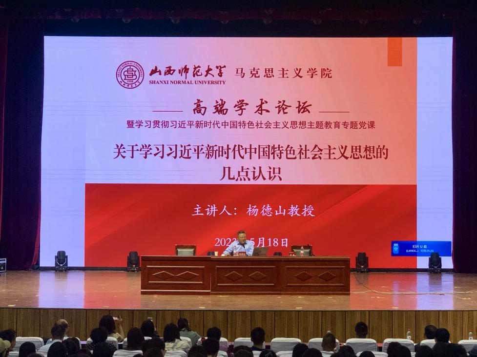 2023年5月18日上午8点半,beat365在科学大会堂报告厅举行高端学术论坛暨学习贯彻习近平新时代中国特色社会主义思想主题教育专题党课。中国人民大学杨德山教授作《关于学习习近平新时代中国特色社会主义思想几点认识》讲座报告。此次活动由院党委书记乔瑞同志主持,beat365部分教师、全体学生党员参会。