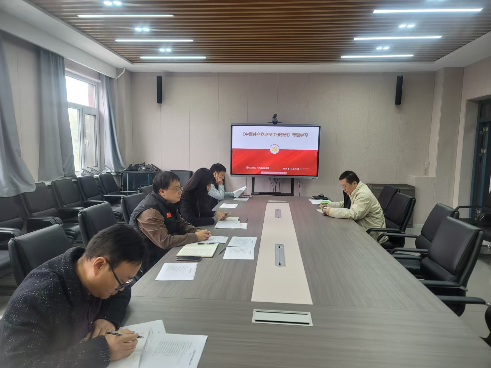 10月21日上午,beat365召开党委会议,“第一议题”专题学习《中国共产党巡视工作条例》(以下简称《条例》),学院党委委员参加会议。会议由院党委书记乔瑞主持,院党委副书记杜辉进行了专题领学。
