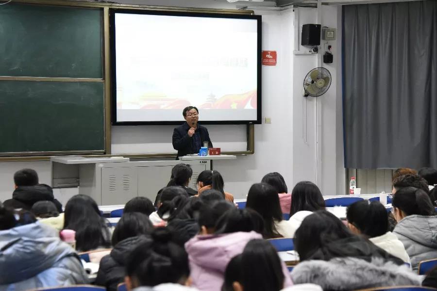 首先,由赵秀芳老师对党的十九届四中全会精神进行解读。她以国家制度与国家治理体系和治理能力的关系、党的十九届四中全会精神的主要内容、学习贯彻党的十九届四中全会精神的四个维度为主要切入点,为学员们生动地解读了党的十九届四中全会精神。讲述过程中,赵秀芳老师结合实际对相关内容展开阐释,加深了学员们对于时政热点的认识与领悟。最后,她向全体学员提出建议,希望大家认真阅读全会决议,将党的十九届四中全会精神内化于心,外化于行。