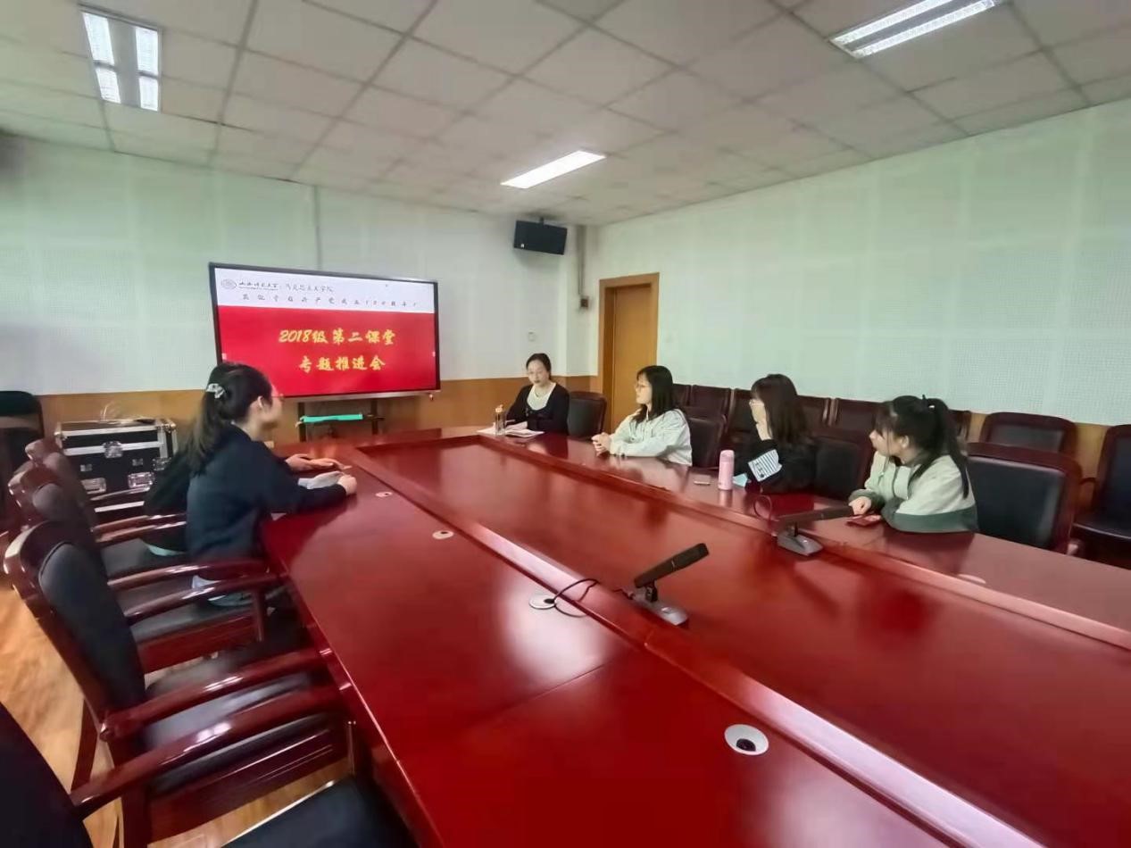 3月25日下午,beat365共青团在科学会堂A508会议室顺利召开2018级本科学生“第二课堂成绩单制度”推进会,院团委老师张瑞琴主持会议,2018级二课学分未达标的同学参加会议。