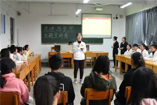 在第一部分的宣讲中,马研社成员用通俗易懂、幽默风趣的语言分别为同学们介绍了转学前后的马克思,让马克思从一个枯燥的名词概念中跳出来,成为同学们心中一个有血有肉的“普通人”,引起了台下同学们的阵阵掌声。
