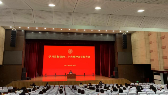 随着音乐的响起,学习贯彻党的二十大精神宣讲报告会正式开始。贾绘泽校长做关于党的二十大精神和论文选题内容的报告。