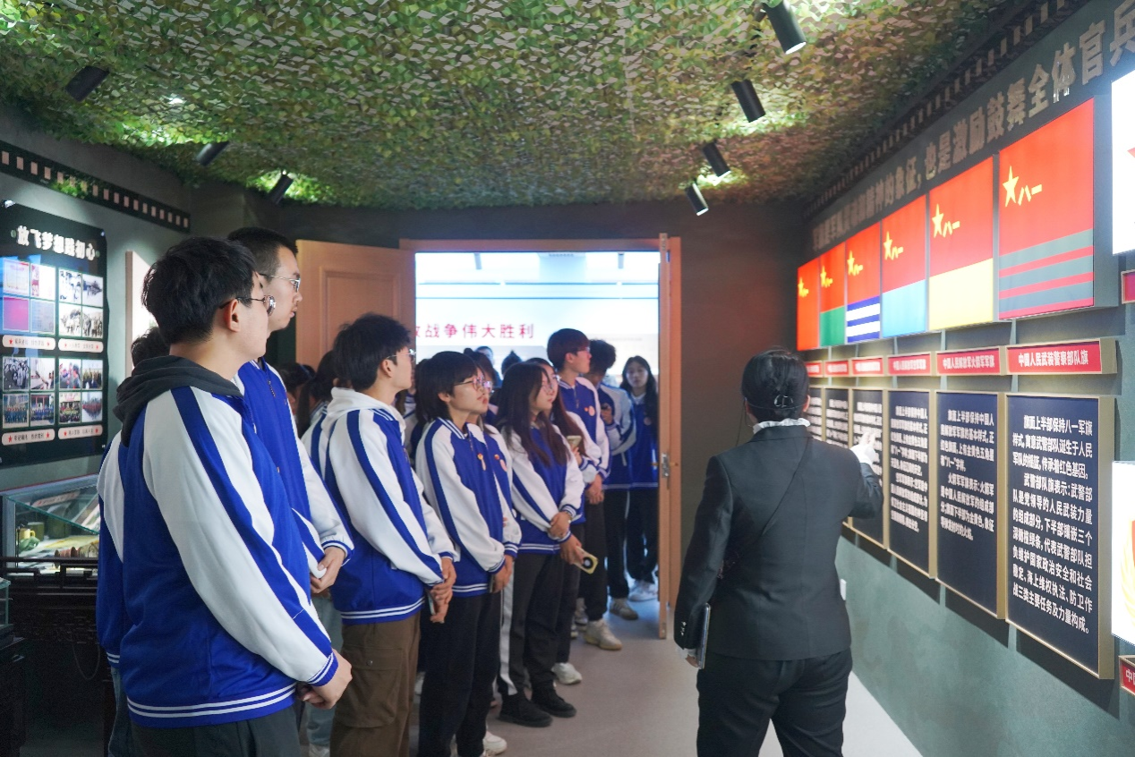 在参观过程中,同学们跟随着讲解员的步伐,聆听了讲解员对党史长廊、军史长廊、军旅生涯记忆厅以及军魂闪耀厅的详细讲解。讲解员深情讲述了廊内所陈列的每一份文字记录、每一张图片、每一件实物背后内涵的重要意义,生动展现了我国党和军队发展的历史轨迹以及勇士们在保卫国家、捍卫和平中作出的伟大贡献。同学们细致参观,用心感悟,时而提出疑问,时而相互交流,仿佛穿越时光,亲历了一场关于荣耀、牺牲和奉献的历史之旅,在重温党光辉历程的同时,深刻领会了党领导人民军队不怕牺牲、砥砺奋进的革命精神。