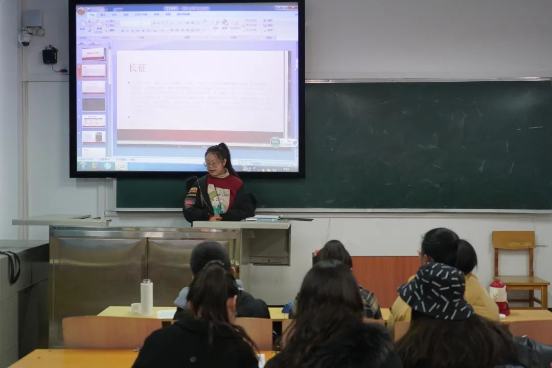 比赛前,参赛同学认真准备,整理相关材料、制作PPT、撰写讲稿、反复练习。比赛过程中,八位参赛选手依次进行展示。他们从容自信地走上讲台,围绕马克思主义理论、长征精神、红色路线、改革开放等课题,结合PPT和视频资料,进行了绘声绘色的讲解。展示结束后,20级研究生优秀学生代表曹淦、19级本科生学生代表白沛林、宋鹏慧分别从教学目标、教学课件、教学板书、临场表现等方面对同学们进行了精彩的点评,有针对性地提出了问题和建议,各位参赛选手都表示收获满满。